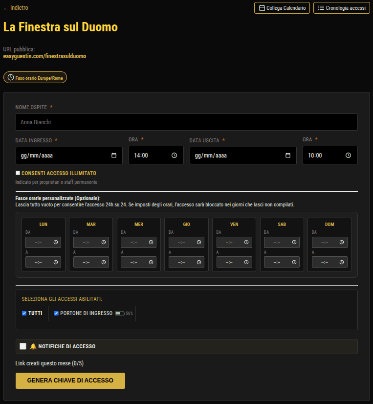 La pagina di accesso non serve solo ad aprire la porta. È il tuo spazio per comunicare. Aggiungi le password del WiFi, consiglia i tuoi ristoranti preferiti o lascia un messaggio di benvenuto che scalda il cuore. Trasforma un semplice ingresso in un concierge tascabile, sempre disponibile.